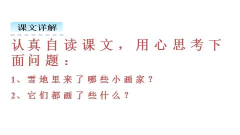 同学们,你们知道雪地里还会来哪些新的“小画家”,它们又会画出什么样的作品呢?下节课我们继续来学习雪地里的小画家。