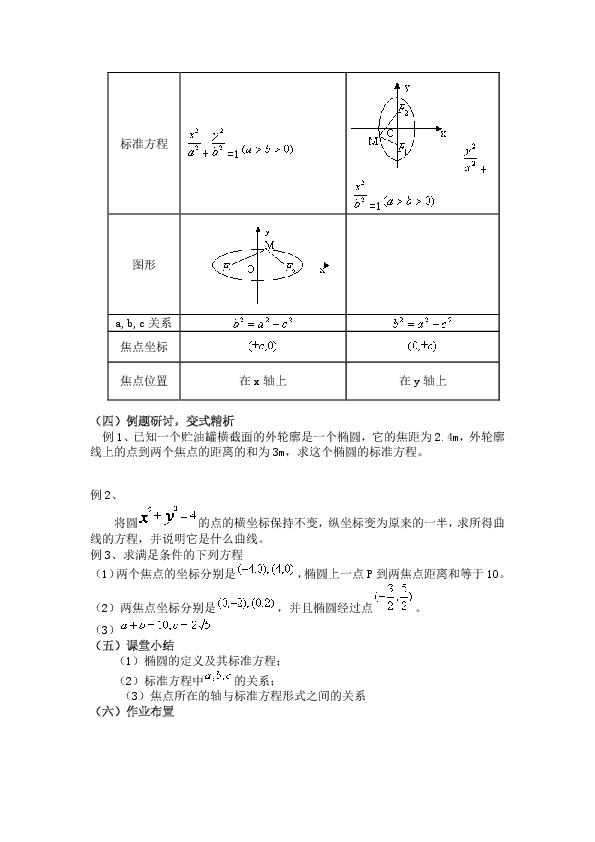 教师指出:我们所得的两个方程+=1和+=1()都是椭圆的标准方程。