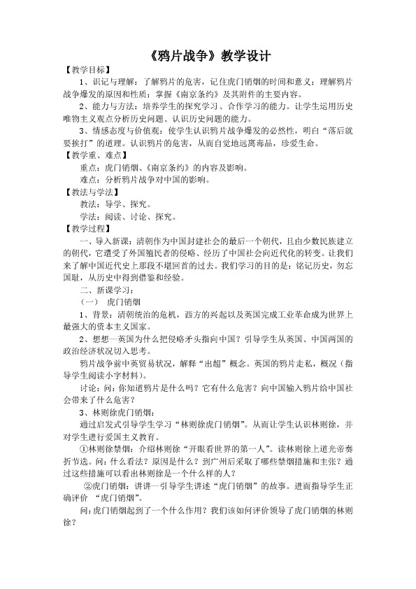 以下为《鸦片战争教学设计》的无排版文字预览,完整格式请下载