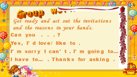 Get ready and act out the invitations and the reasons in your hands.