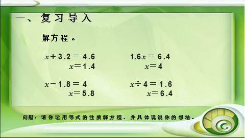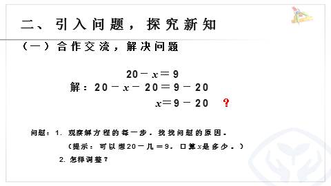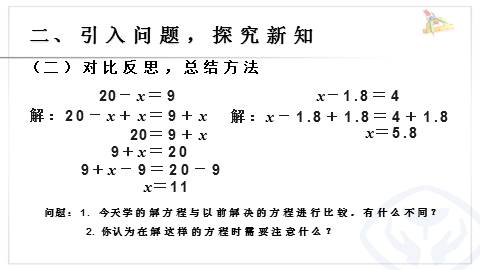 问题:1. 今天学的解方程与以前解决的方程进行比较,有什么不同?