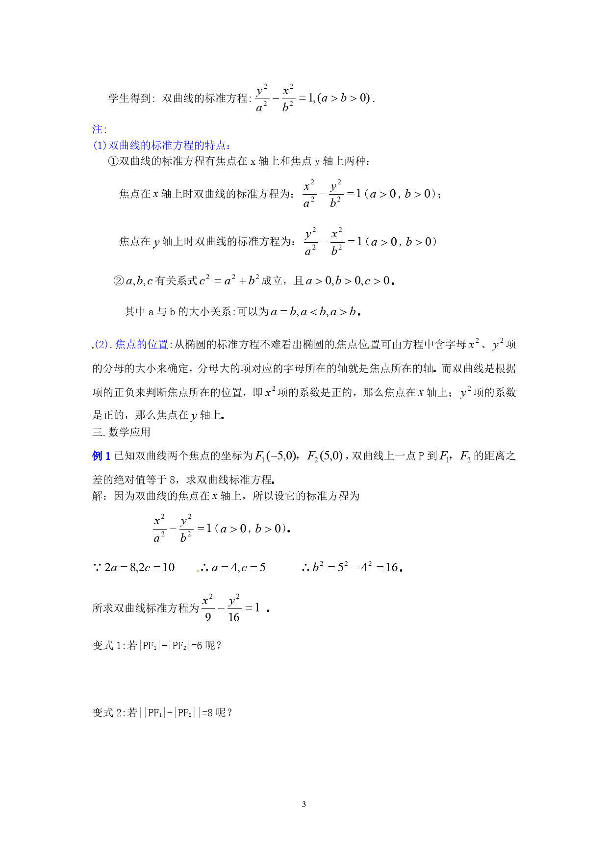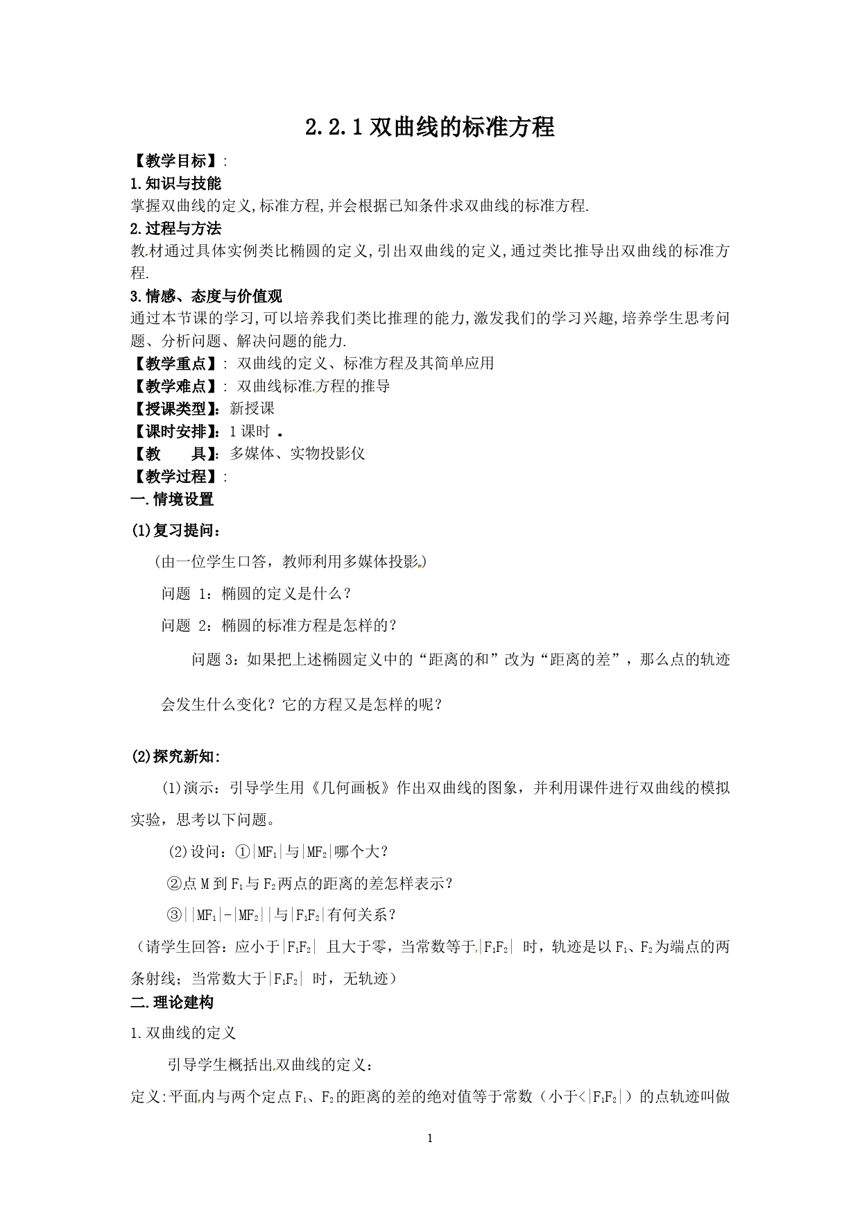 【教学重点】: 双曲线的定义、标准方程及其简单应用