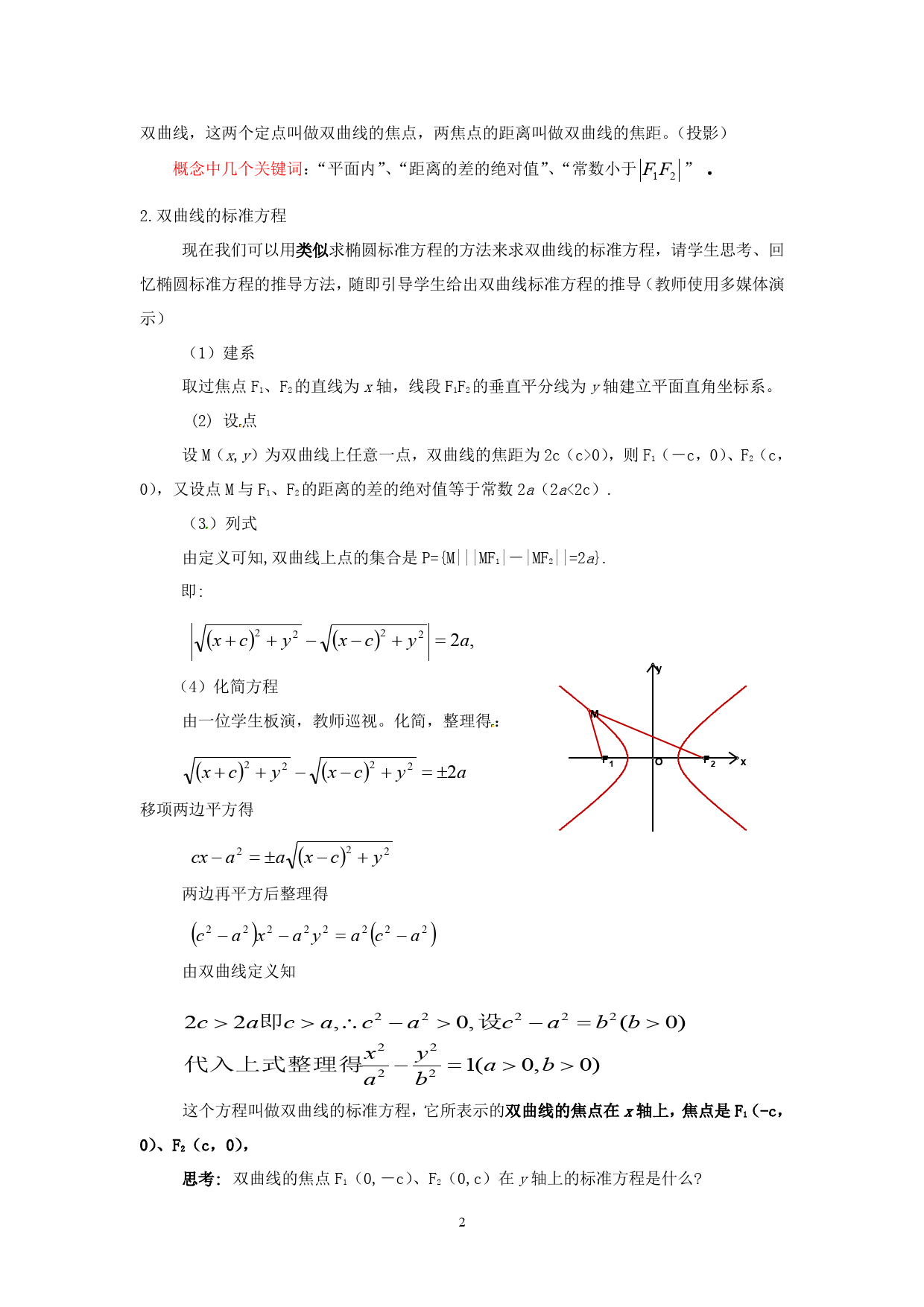教材通过具体实例类比椭圆的定义,引出双曲线的定义,通过类比推导出双曲线的标准方程.