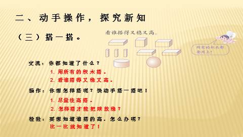 过渡:让我们再用这些形状的物体搭一搭吧!