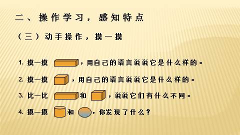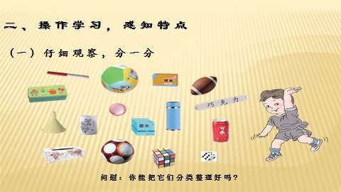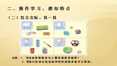 2. 用自己的语言说说每种形状的物体是什么样的。