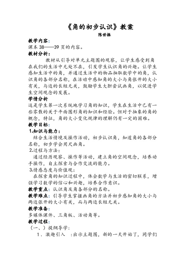 以下为《角的初步认识教案》的无排版文字预览,完整格式请下载