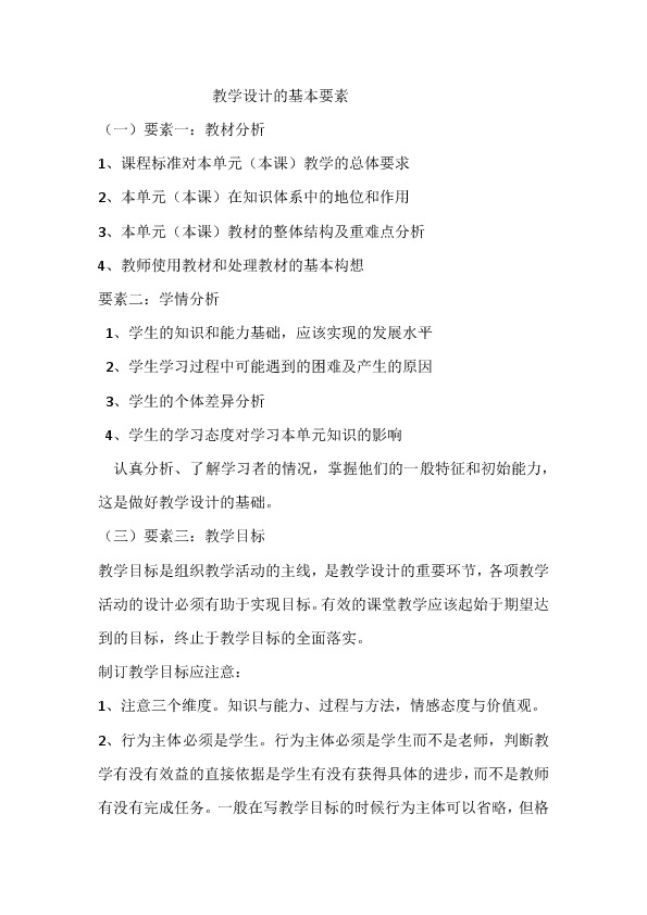 以下为《教学设计的基本要素》的无排版文字预览,完整格式请下载