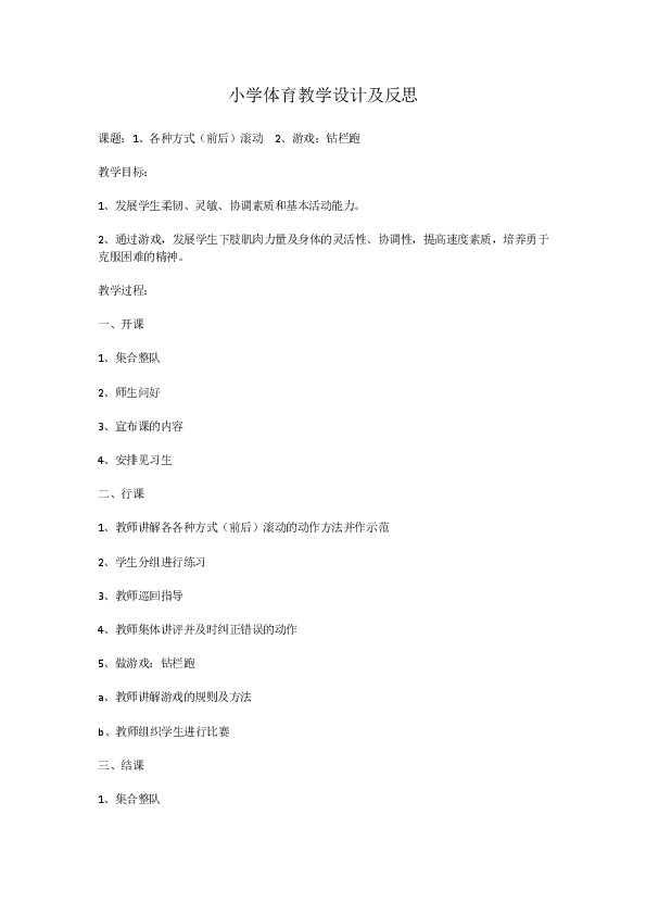 课题:1、各种方式(前后)滚动 2、游戏:钻栏跑