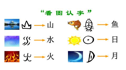 2、知道我国最早的文字叫“象形字”,并猜猜认认这些象形字。