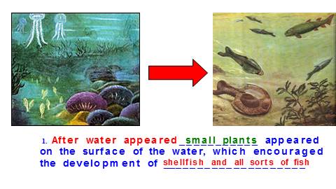 1. After water appeared___________ appeared on the surface of the water, which encouraged the development of ____________________