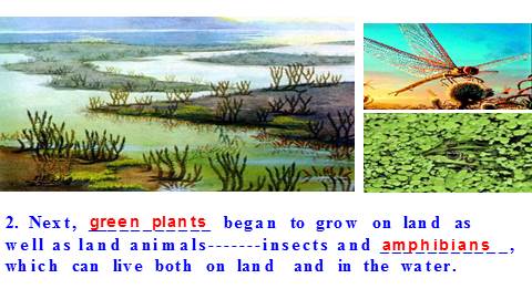 2. Next, ___________ began to grow on land as well as land animals-------insects and ___________, which can live both on land and in the water.