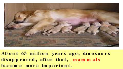 About 65 million years ago, dinosaurs disappeared, after that, _________ became more important.