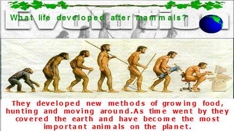They developed new methods of growing food, hunting and moving around.As time went by they covered the earth and have become the most important animals on the planet.
