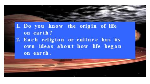 1. Do you know the origin of life on earth?2. Each religion or culture has its own ideas about how life began on earth.