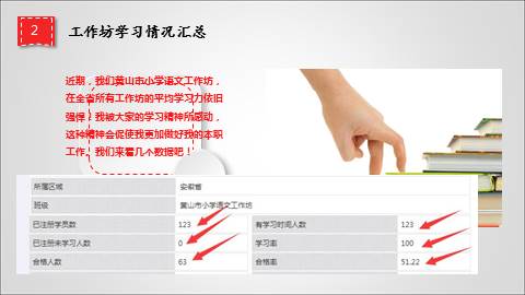近期,我们黄山市小学语文工作坊,在全省所有工作坊的平均学习力依旧强悍!我被大家的学习精神所感动,这种精神会促使我更加做好我的本职工作。我们来看几个数据吧!