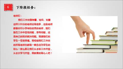 我们工作坊像陈蕾、桂某某、刘某某这样100分的老师还有很多,这些老师都是农村小学特别优秀的老师,她们能在工作中发现问题,思考问题,还用自己的知识解决问题。我想她们的学生一定很幸福。我相信我们工作坊的所有老师也都有一颗永远为学生的初心!那么就让我们从本职工作开始,从本次学习开始,做教育的有心人吧!