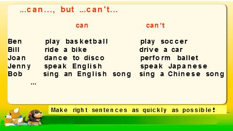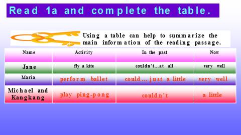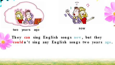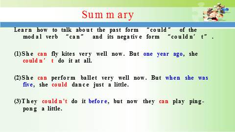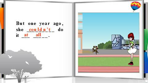 (1)She can fly kites very well now. But one year ago, she couldn’t do it at all.