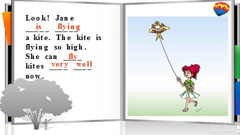 a kite. The kite is flying so high. She can ____ kites ____ ____ now.