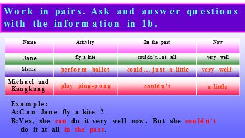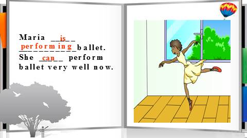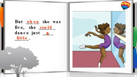 (2)She can perform ballet very well now. But when she was five, she could dance just a little.