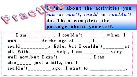 Think about the activities you can or can't, could or couldn't do. Then complete the passage about yourself.
