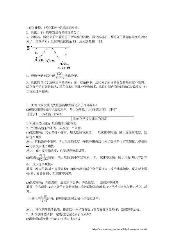1.知道活化能的涵义及其化学反应速率的影响。