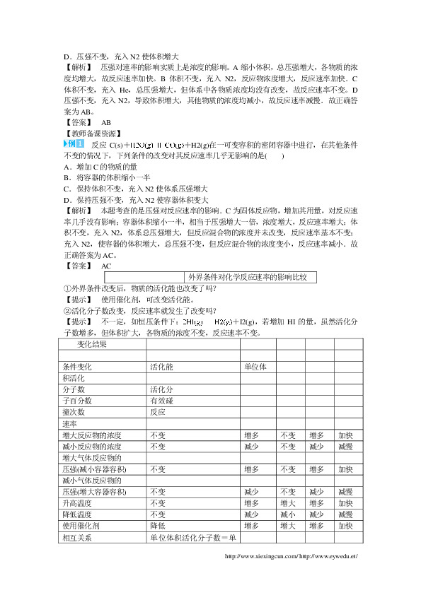②怎样正确分析压强对化学反应速率的影响。