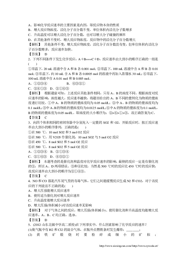 1.(2012XXXXX**_*下列有关影响化学反应速率的因素的说法错误的是( )