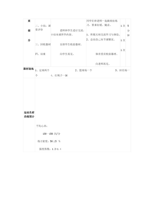 1、重点:培养跑的正确姿势,发展学生快速跑的能力。决定跑速的两个因素:步长和步频。