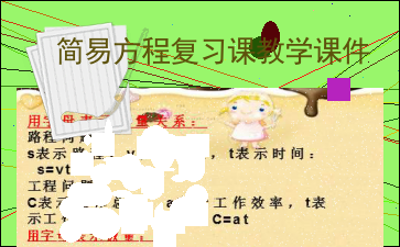 以下为《简易方程复习课教学课件》的无排版文字预览,完整格式请下载