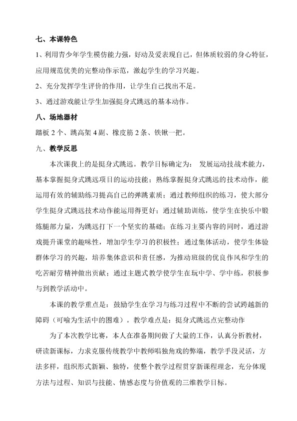 以下为《挺身式跳远教学设计》的无排版文字预览,完整格式请下载