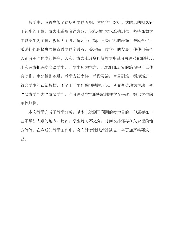 1、通过教师组织的练习,使大部分学生挺身式跳远技术动作能运用得更好。