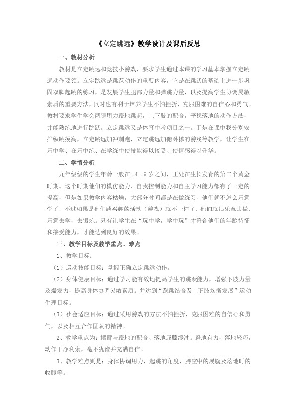 以上为《《立定跳远》教学设计及课后反思》的无排版文字预览,完整格式请下载