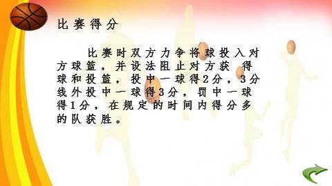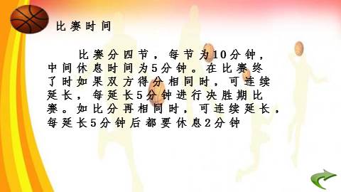 比赛得分 比赛时双方力争将球投入对方球篮,并设法阻止对方获 得球和投篮,投中一球得2分,3分线外投中一球得3分,罚中一球得1分,在规定的时间内得分多的队获胜。 比赛分四节,每节为10分钟, 中间休息时间为5分钟。在比赛终了时如果双方得分相同时,可连续延长,每延长5分钟进行决胜期比赛。如比分再相同时,可连续延长,每延长5分钟后都要休息2分钟比赛时间谢谢指导![文章尾部最后300字内容到此结束,中间部分内容请查看底下的图片预览]
