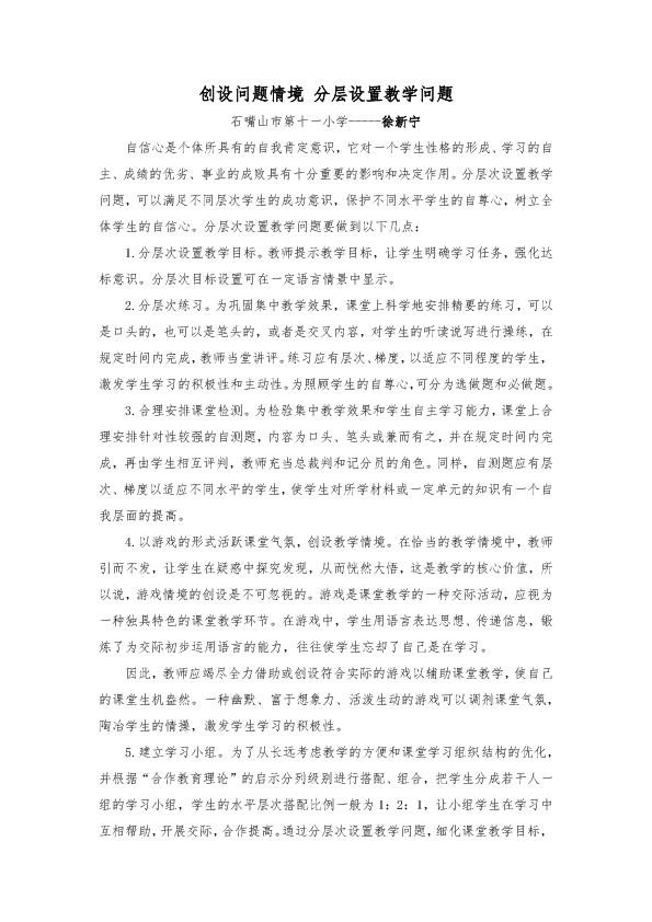 以下为《创设问题情境 分层设置教学问题 徐某某》的无排版文字预览,完整格式请下载
