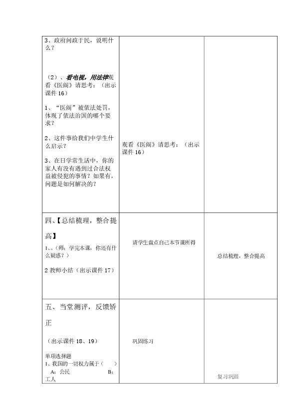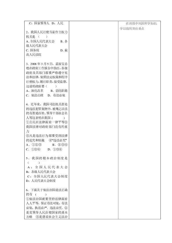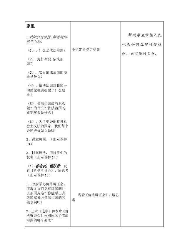 ?2.知道依法治国是我国的治国方略,了解法制国家的特点,树立法律意识。