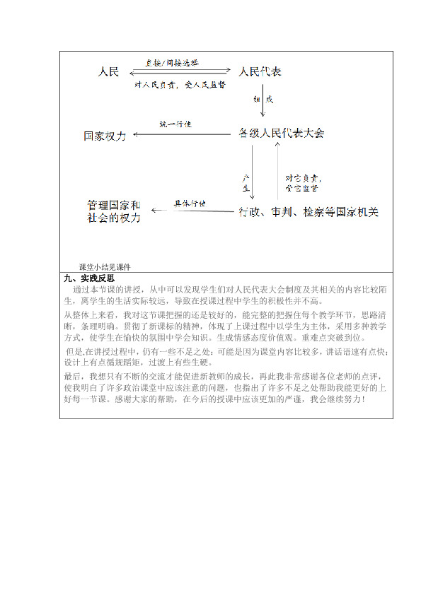 ??? 通过本节课的讲授,从中可以发现学生们对人民代表大会制度及其相关的内容比较陌生,离学生的生活实际较远,导致在授课过程中学生的积极性并不高。