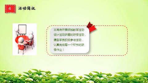 本周将开展领域教学活动设计活动研磨的研修活动,请各学员积极参与活动,认真完成每一个环节的研修作业!