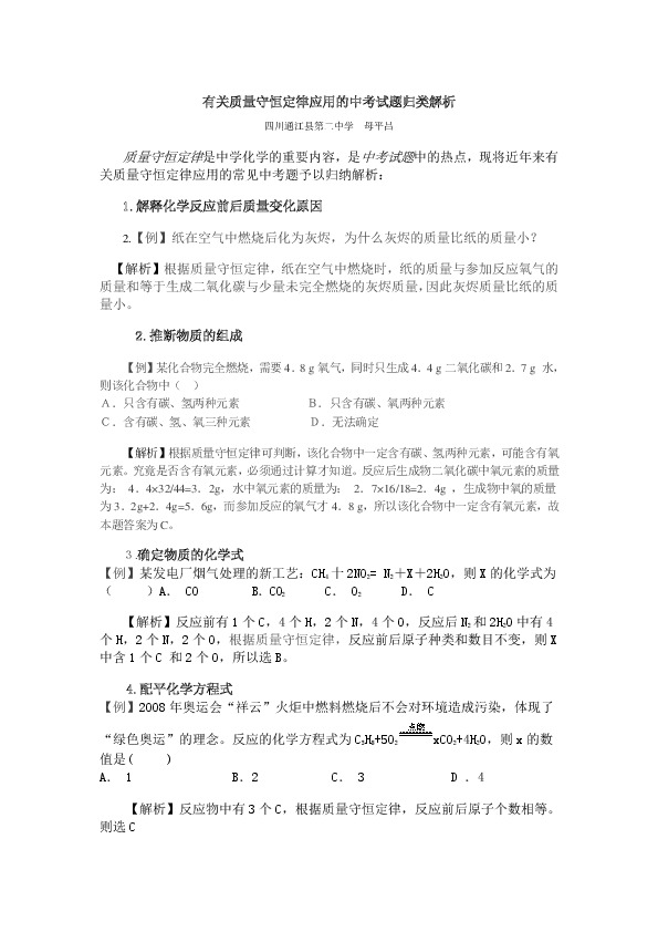 以下为《有关质量守恒定律应用的中考试题归类解析》的无排版文字预览,完整格式请下载