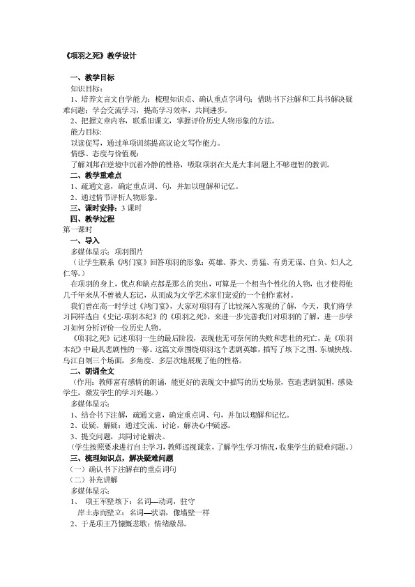 以上为《项羽之死 教学设计》的无排版文字预览,完整格式请下载