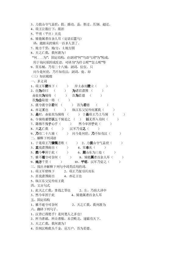 ????1、项王军壁垓下????????????2、项王乃复引兵而东