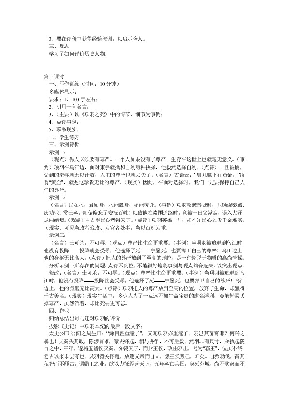 ????3、(主要)以《项羽之死》中的情节、细节为事例;
