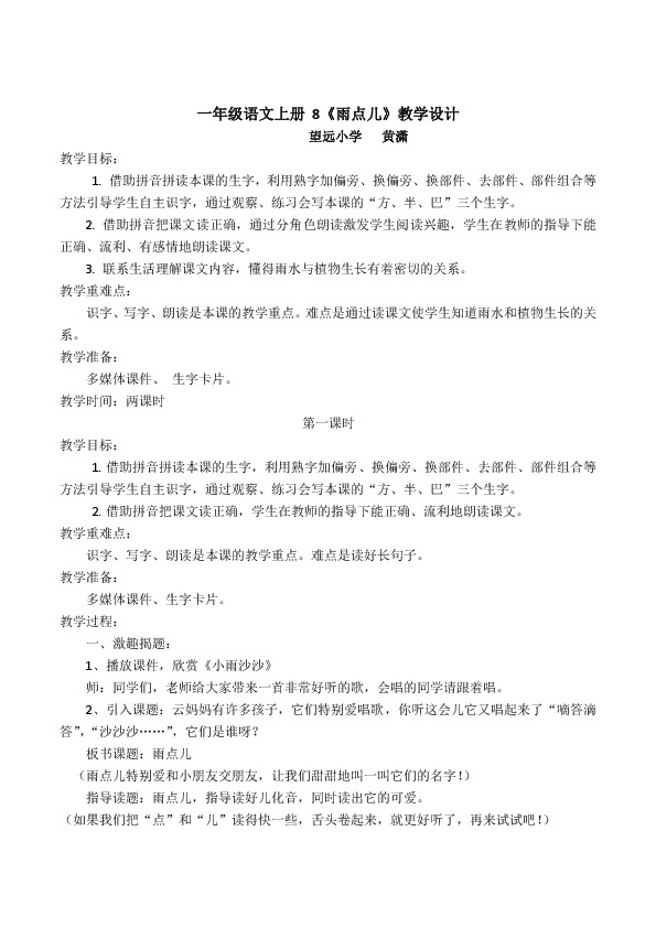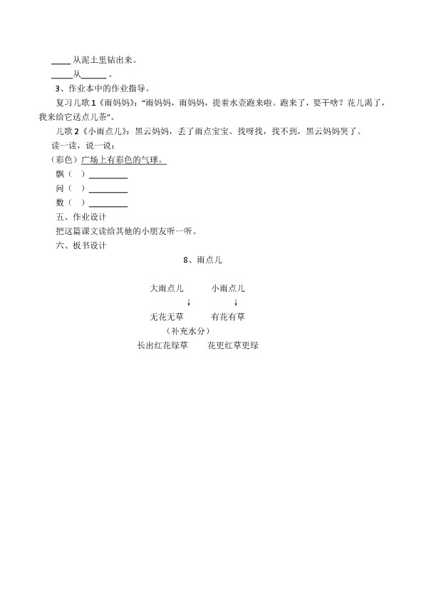 一年级语文上册??8《雨点儿》教学设计