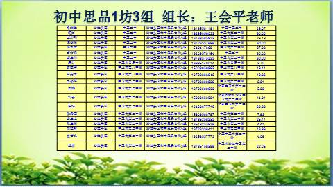 初中思品1坊3组 组长:王某某老师