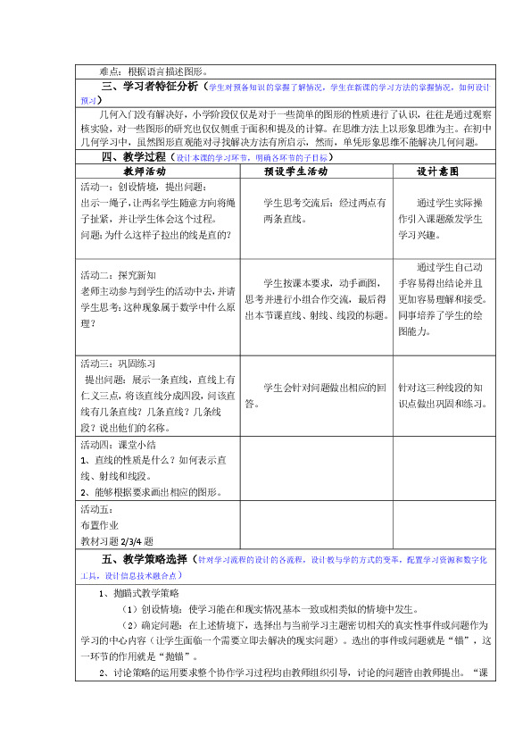 五、教学策略选择(针对学习流程的设计的各流程,设计教与学的方式的变革,配置学习资源和数字化工具,设计信息技术融合点)