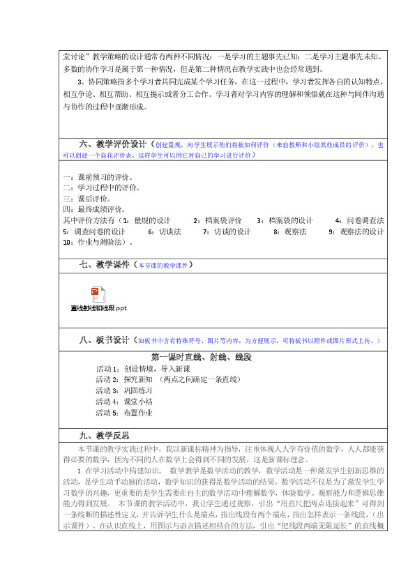 六、教学评价设计(创建量规,向学生展示他们将被如何评价(来自教师和小组其他成员的评价)。也可以创建一个自我评价表,这样学生可以用它对自己的学习进行评价)