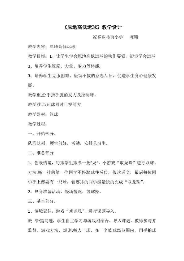 以下为《原地高低运球教学设计(1)》的无排版文字预览,完整格式请下载