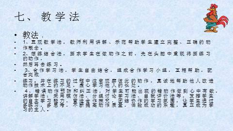 1、直观教学法,教师利用讲解、示范帮助学生建立完整、正确的动