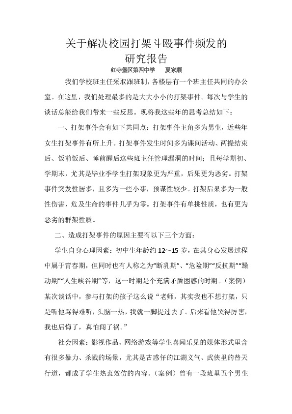 以下为《关于解决校园打架斗殴事件频发的研究报告》的无排版文字预览,完整格式请下载
