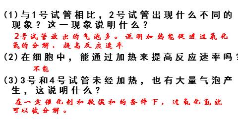实验原理:过氧化氢在高温或铁离子或过氧化氢酶的作用下都可分解成水和氧气。