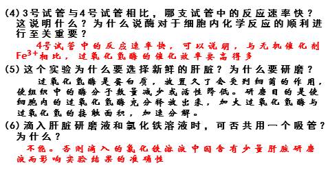 (5)这个实验为什么要选择新鲜的肝脏?为什么要研磨?